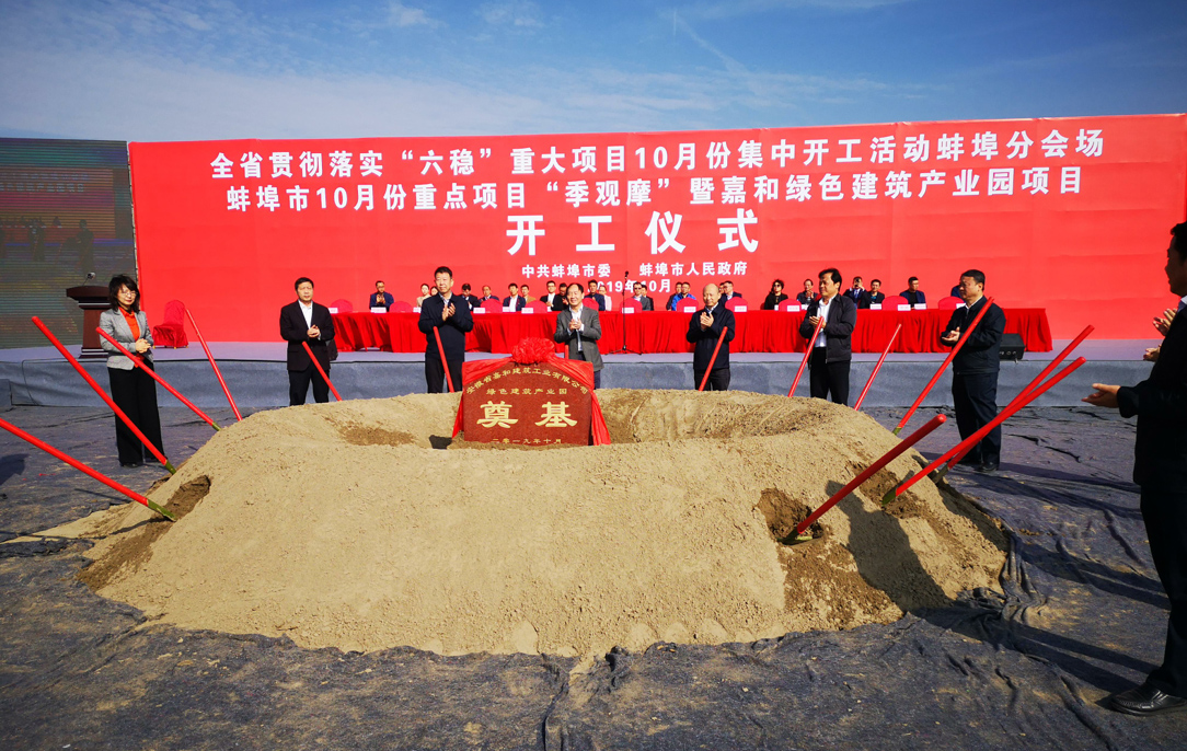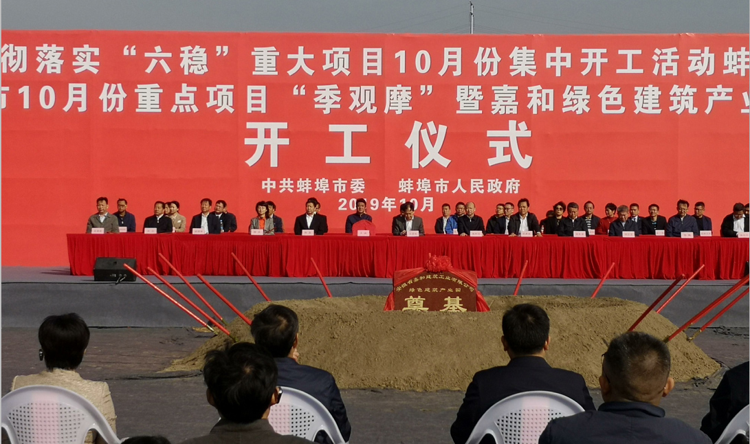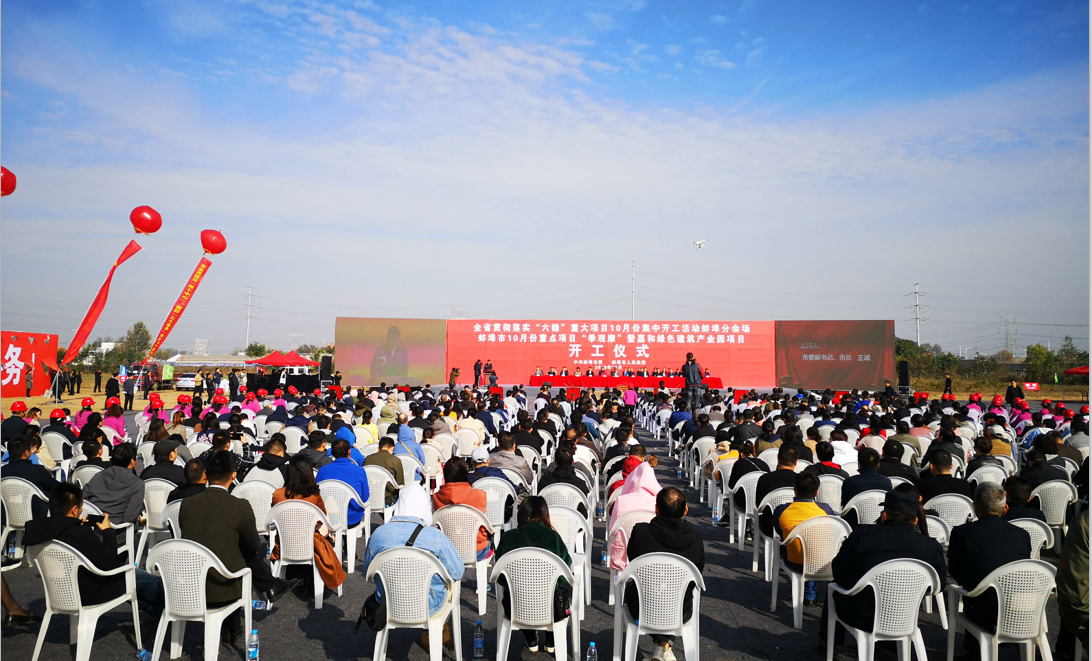 10月28日,安徽水利嘉和建筑工業(yè)產(chǎn)業(yè)園項(xiàng)目現(xiàn)場(chǎng),彩旗飄揚(yáng),挖掘機(jī)、推土機(jī)整裝待發(fā);綴著橫幅的空飄猶如一串串大紅燈籠高高掛在空中,到處洋溢著喜悅的氛圍。蚌埠市10月份重大項(xiàng)目集中開(kāi)工暨嘉和綠色建筑產(chǎn)業(yè)園項(xiàng)目開(kāi)工儀式在此隆重舉行。