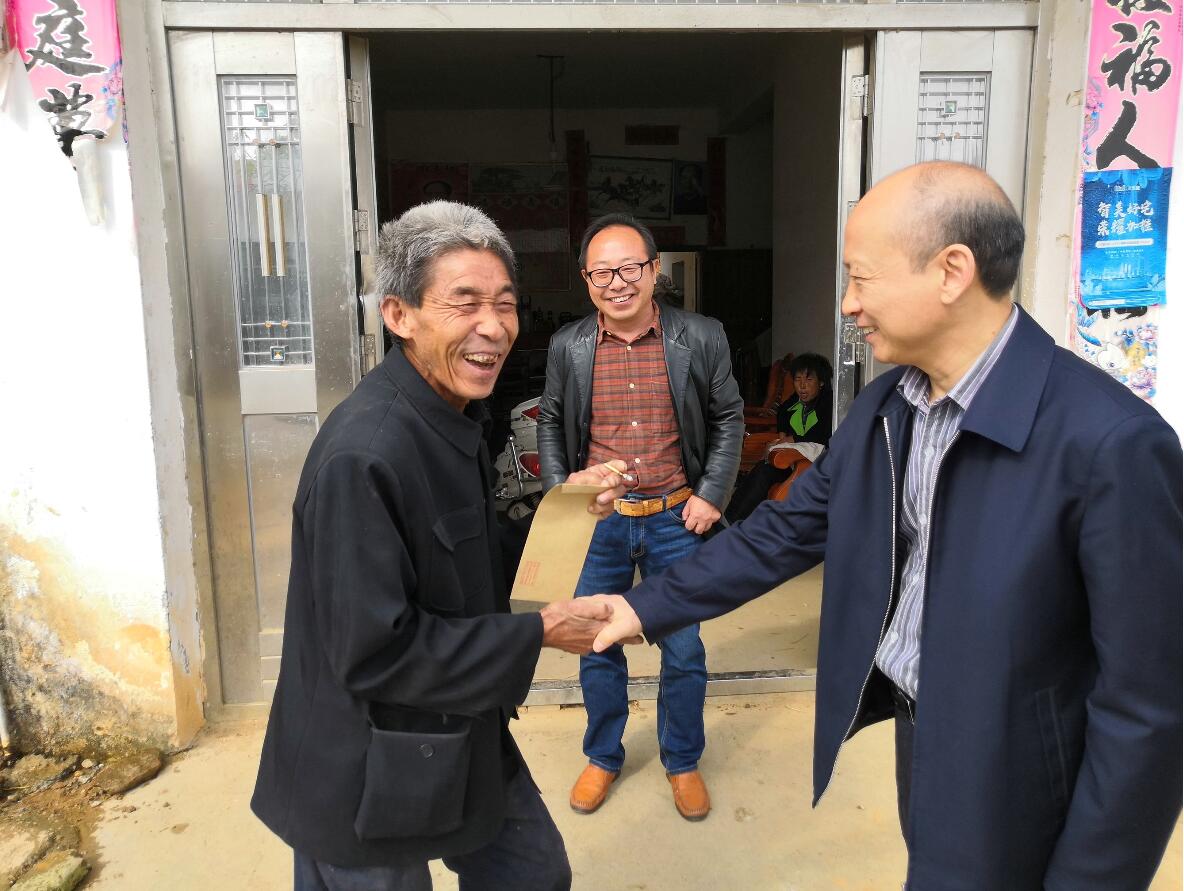 趙時運一行首先來到九姑村,詳細了解了駐村工作隊同志的工作生活情況,對工作隊扎根扶貧一線,取得階段性成績給予了充分肯定。趙時運來到對口幫扶的貧困戶項金友家中,關切詢問了老人的健康狀況和生活情況,尤其是對老人關心的子女就業問題進行詳細了解、出謀劃策,囑咐他堅定脫貧信心。期間,霍向東、宋志華分別走訪了各自對口幫扶的貧困戶。