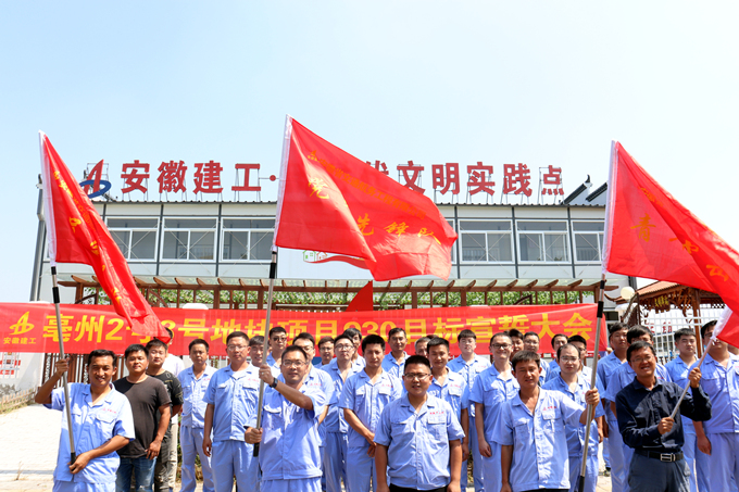 當天,驕陽似火。亳州2號3號地塊項目經理史冠蘭莊重地給黨員們授予“黨員先鋒隊”“黨員突擊隊”紅旗,給青年突擊隊員們授予“青年突擊隊”紅旗,給工人們授予了“工人突擊隊”紅旗,并提出了四點要求:一是要緊緊圍繞2號地塊930目標任務開展突擊活動。全體黨員干部、青年同志和工人先鋒要充分發揚不怕吃苦、勇于負重,敢打硬仗、能打硬仗的優良傳統,切實發揮“黨員先鋒隊”“黨員突擊隊”“青年突擊隊”和“工人先鋒隊”,在“急、難、險、重”任務中的生力軍作用。二是要把搶工大干與錘煉黨員意志相結合。黨員干部、青年同志和工人同志們要充分發揮模范帶頭作用,深入項目一線,以身作則爭搶工期。要在此次搶工大干中拓展本領、錘煉意志、增強黨性。三是要把搶工大干與勞動競賽充分結合,把勞動競賽的重拳落在工程進度上。四是要充分發揮“黨建帶工建團建”作用。“黨員先鋒隊”要引導好“青年突擊隊”“工人突擊隊”開展好突擊任務,黨員干部與青年、工人同志們要相互關心,密切配合,充分發揮整體功能和團隊精神,確保完成2號地塊九月底主車道具備通車條件的“930”目標任務。