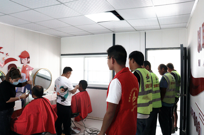此外,公司以“保障一線施工人員的權益”為落腳點,花式“送福利”,讓工人們體會到了家一般的溫暖。“我參加的活動多著呢!中秋節送月餅、愛心剪發、夏日送清涼等,在其他地方可沒這個待遇。”談起工作之余,施工班組組長胡恒悅忍不住夸贊道。為營造新時代文明實踐好氛圍,使農民工兄弟們感受到關愛,交航公司全力做好后勤保障,力爭為一線員工提供更加舒適的工作環境。