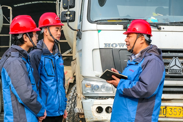 固蚌高速02標(biāo)施工便道上往來工程車、運(yùn)料車不斷。此刻,另一位老師傅,今年47歲的老黨員馮智,正在嚴(yán)把原材料質(zhì)量關(guān)、數(shù)量關(guān),確保質(zhì)量、成本“雙控”目標(biāo)。2.6km的澮河特大橋采取兩岸向河中合龍施工,工程量大,面對(duì)艱巨挑戰(zhàn),老馮同志始終把踐行初心使命作為促進(jìn)建設(shè)的最大動(dòng)力。他在開工前對(duì)水運(yùn)、陸運(yùn)線路成本反復(fù)估算,不怕腿跑斷,不怕嘴磨破,與當(dāng)?shù)卣⒋申?duì)伍聯(lián)系、協(xié)商,將罐車運(yùn)輸時(shí)間從原本的90分鐘縮短至20分鐘,有效提升了現(xiàn)場(chǎng)澆筑效率。“管好現(xiàn)場(chǎng)才能控制成本,利潤(rùn)就是靠點(diǎn)滴積累的。”他每天都堅(jiān)持對(duì)料場(chǎng)進(jìn)行檢查和清理,在平凡的崗位上做到兢兢業(yè)業(yè)。