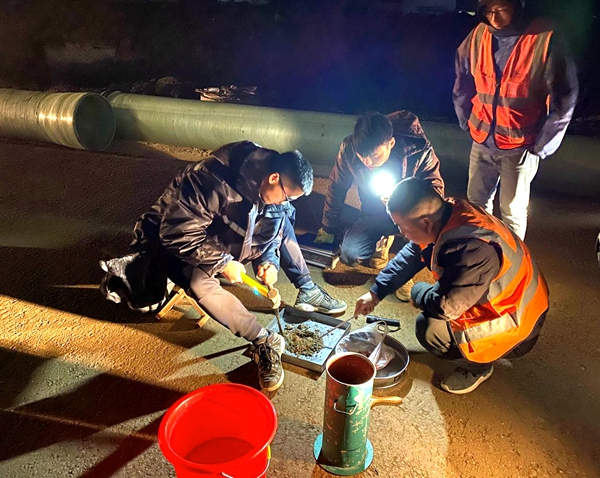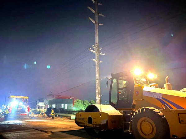由于該項目施工區域位于交通干道,車輛、人員流動量大,道路兩旁住房、廠房密布,大規模作業無法實施。針對種種困難和壓力,項目部精心謀劃,組織精干力量,分重點、分區域、分節點,采用“插縫施工”思路,以點帶面,以面促片,順利完成路床交驗、路面水穩試驗段鋪筑、污水管道施工和全線舊路面板破除等節點任務。
