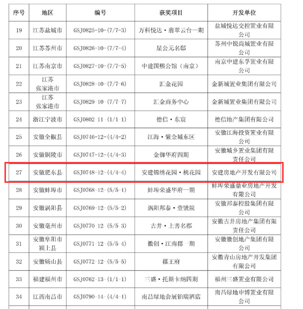 從申報獎項到最終獲獎,從項目開工建設到竣工交付,安建錦繡花園·桃花園歷時三年時間,通過市、省、國家三級評選機構層層選拔,歷經專家評審組的多次實地考察、嚴苛把關,最終從全國數百個參評項目中突圍而出。