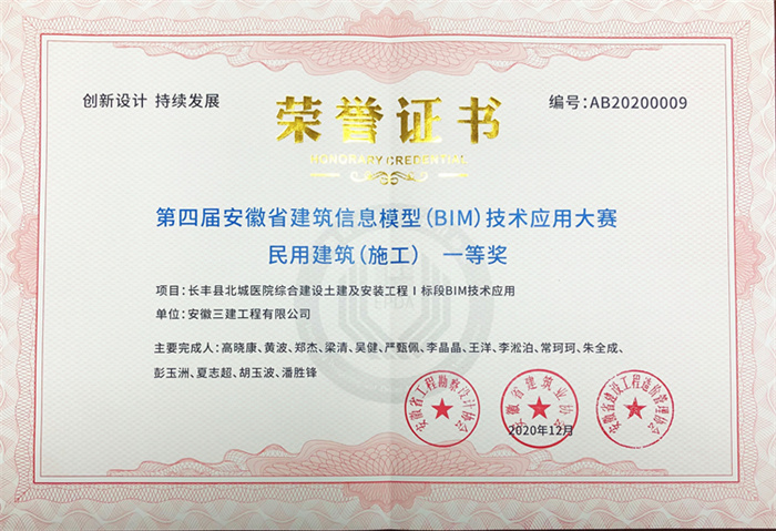 近期,安徽三建公司喜獲三項(xiàng)BIM大獎!《省重點(diǎn)實(shí)驗(yàn)室-抗震檢測實(shí)驗(yàn)室BIM綜合深化應(yīng)用》獲第五屆中國建設(shè)工程BIM大賽綜合三類成果,長豐縣北城醫(yī)院項(xiàng)目、合肥市青少年綜合實(shí)踐基地新建工程分獲2020年度安徽省第四屆建筑信息模型(BIM)技術(shù)應(yīng)用大賽一等獎和三等獎。