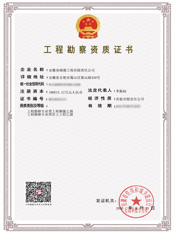 “十三五”期間,安徽路港大膽探索、勇于實踐,積極推進資質升級,先后取得港口與航道工程施工總承包特級資質、水運行業設計甲級資質、建筑工程行業丁級資質、工程勘察專業類(巖土工程勘察、工程測量)兩項乙級資質,企業核心競爭力和可持續發展能力持續提升。