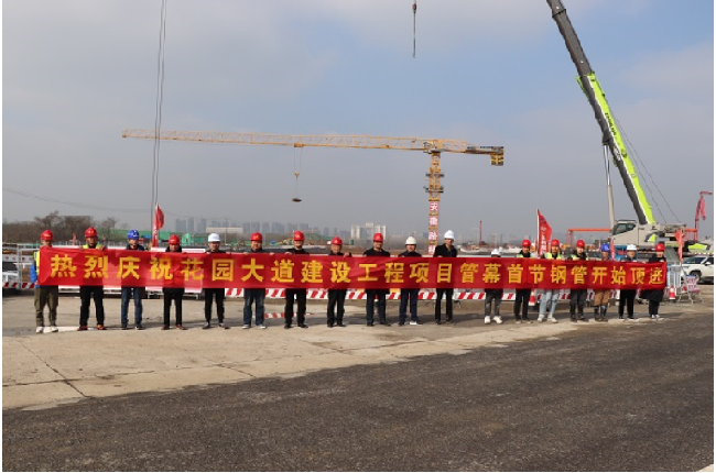 3月2日9時18分,安徽路橋集團(tuán)花園大道(徽州大道-包河大道)建設(shè)工程隧道管幕首節(jié)鋼管開始頂進(jìn)。