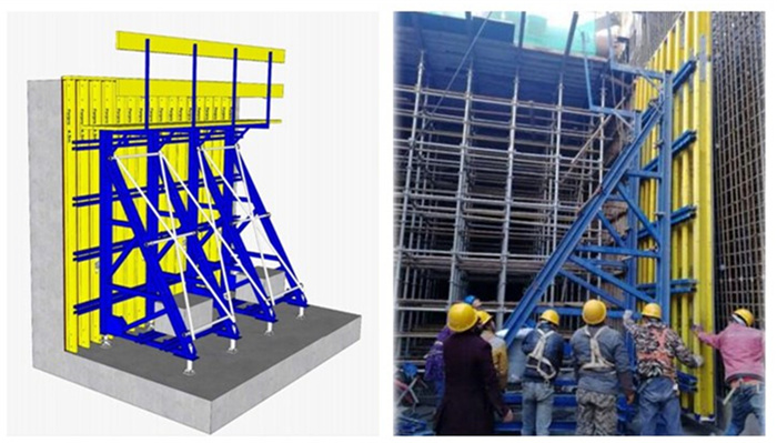 采用定型化模板施工。傳統國內地下工程模板支架多采用鋼管架(或碗扣架)+木模板的形式,人材機投入大,安拆周期長,而且搭設過程中控制細節多,質量不易保證,安全風險大。為此軌道交通項目側墻施工采用大膠合板+木工字梁+桁架支撐的單側模板臺車體系。其組裝簡便,利于現場快節奏的流水施工;整體承載力較大,能抵抗不同混凝土側壓力;可變高度,可適應不同墻體高度;可利用小型輪車進行整體轉移,節省現場塔吊臺班量;采用在板上預埋錨固裝置,側墻上無需預埋,可完全實現清水墻效果。據統計平均每塊墻板縮短工期約10天。在保證質量的同時極大縮短工期。