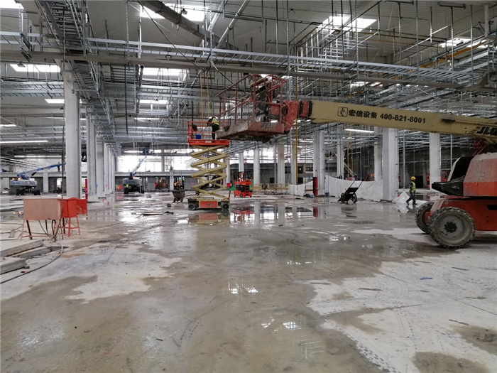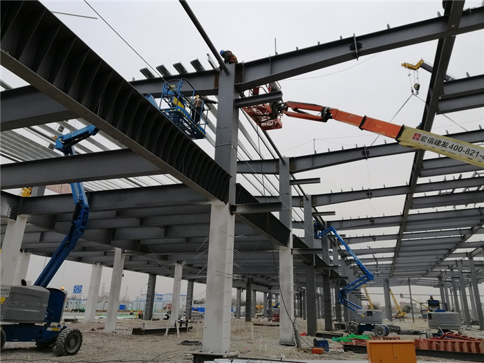 項目指揮部成立之后,立即進行圖紙審查和現場實地調研,一針見血指出了項目施工存在的工期緊、工程涉及專業廣、專業沖突多、圖紙不規范以及與業主、監理溝通難度大等難題,并提出了“加強溝通、全程跟蹤、及時糾偏、靈活多變,確保工序無縫銜接”的總體施工方針,制定了“以鋼結構安裝為主,土建施工與機電安裝并行,見縫插針、不分晝夜、全面開花”的施工部署。進場后,項目指揮部全天候堅守項目施工一線,及時協調三方施工工序;堅持每日召開協調碰頭會,每周召集各方項目負責人召開調度會。項目全員更是緊盯節點目標,以不破樓蘭終不還的決心,夜以繼日推進施工進度。春節假期,項目僅休息一天,年初二即已全面復工。