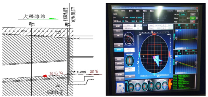 嚴控盾構始發姿態。盾構始發姿態決定了后續施工成敗,是盾構施工重中之重。考慮到盾構機自身重心靠前,始發掘進時易產生向下的“磕頭”現象,項目部將盾構始發軸線比設計軸線抬高20mm。此外,因車站底板自西向東為2‰縱坡,盾構進洞為26‰下坡。按照一般狀況抬高始發軸線易導致侵限。項目查找合肥市軌道交通前期其他盾構隧道施工的經驗,結合大強路站地質情況,調整盾構始發軸線,將盾構始發軸線抬高改為5‰下坡,有效避免了盾構管片侵限。