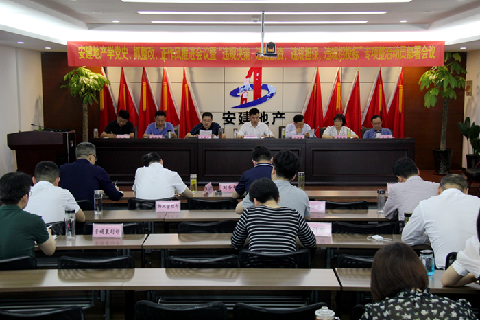 5月27日,安建地產在安建國際大廈21樓會議室召開學黨史、抓整改、正作風推進會議暨“違規決策、違規投資、違規擔保、違規招 投標”專項整治動員部署會議。安建地產領導班子成員,機關部門正副職,機關全體黨員在主會場參會,所屬各單位領導班子成員及各部門負責人在視頻分會場參會。