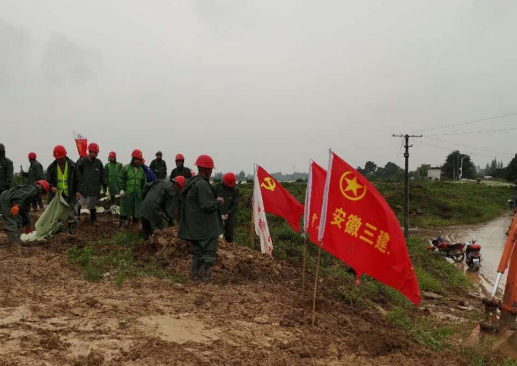 7月19日晚8時許,安建總承包公司懷寧PPP項目部接到懷寧縣政府防汛搶險通知,迅速組派30多名黨員和職工參與搶險救援,連續奮戰至7月20日早晨6時左右成功排除險情。