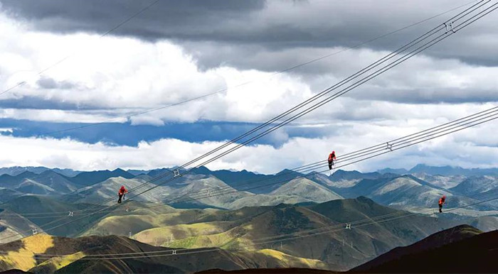 圖為2021年6月11日,國家電網四川送變電公司黨員先鋒隊員對四川省甘孜州兩河口水電站500千伏送出工程線路進行消缺驗收。 國務院國資委供圖 劉湘釩/攝
