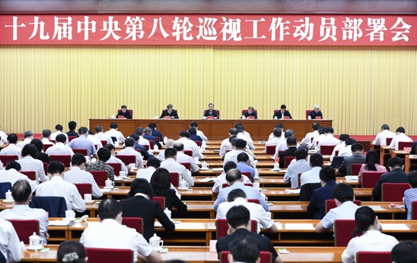 中共中央政治局委員、中央巡視工作領導小組副組長楊曉渡主持會議,中共中央政治局委員、中央巡視工作領導小組副組長陳希宣布十九屆中央第八輪巡視組長授權任職及任務分工決定。