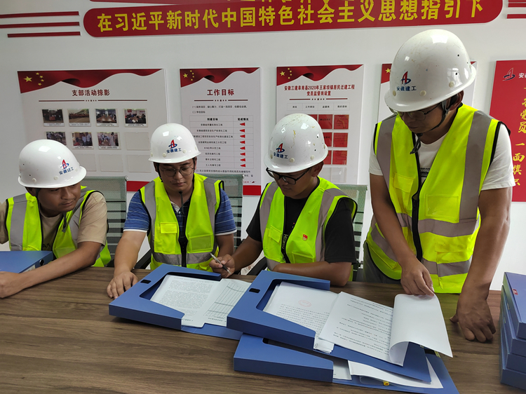 今年8月習近平總書記考察安徽第一站來到王家壩時,要求各級黨委和政府引導和鼓勵村民逐步搬離出去,確保蓄洪區(qū)人口不再增多。安徽三建阜南王家壩項目作為主要淮河行蓄洪居民遷建安置工程的標志性項目,建好該項目意義重大。項目黨支部扎實開展黨史學習教育活動,項目黨員充分發(fā)揮“舍小家,保大家”的王家壩精神,時刻沖在第一位,發(fā)揮先鋒模范作用,時刻謹記黨員職責和工作分工。在關(guān)鍵環(huán)節(jié)、關(guān)鍵領(lǐng)域、關(guān)鍵崗位設(shè)置黨員監(jiān)督崗,確保了項目成本、安全、質(zhì)量、廉潔管理無風險,保證了搶工的質(zhì)量。在項目搶工過程中,黨員同志總是主動堅持跟班作業(yè),堅守在現(xiàn)場攻堅克難第一線,總是帶頭加班“挑燈夜戰(zhàn)”,耕耘在突破“卡脖子”難題最前沿,堅持將黨史學習過程中汲取的精神養(yǎng)分,轉(zhuǎn)化為推動重點民生項目建設(shè)的強大行動力。