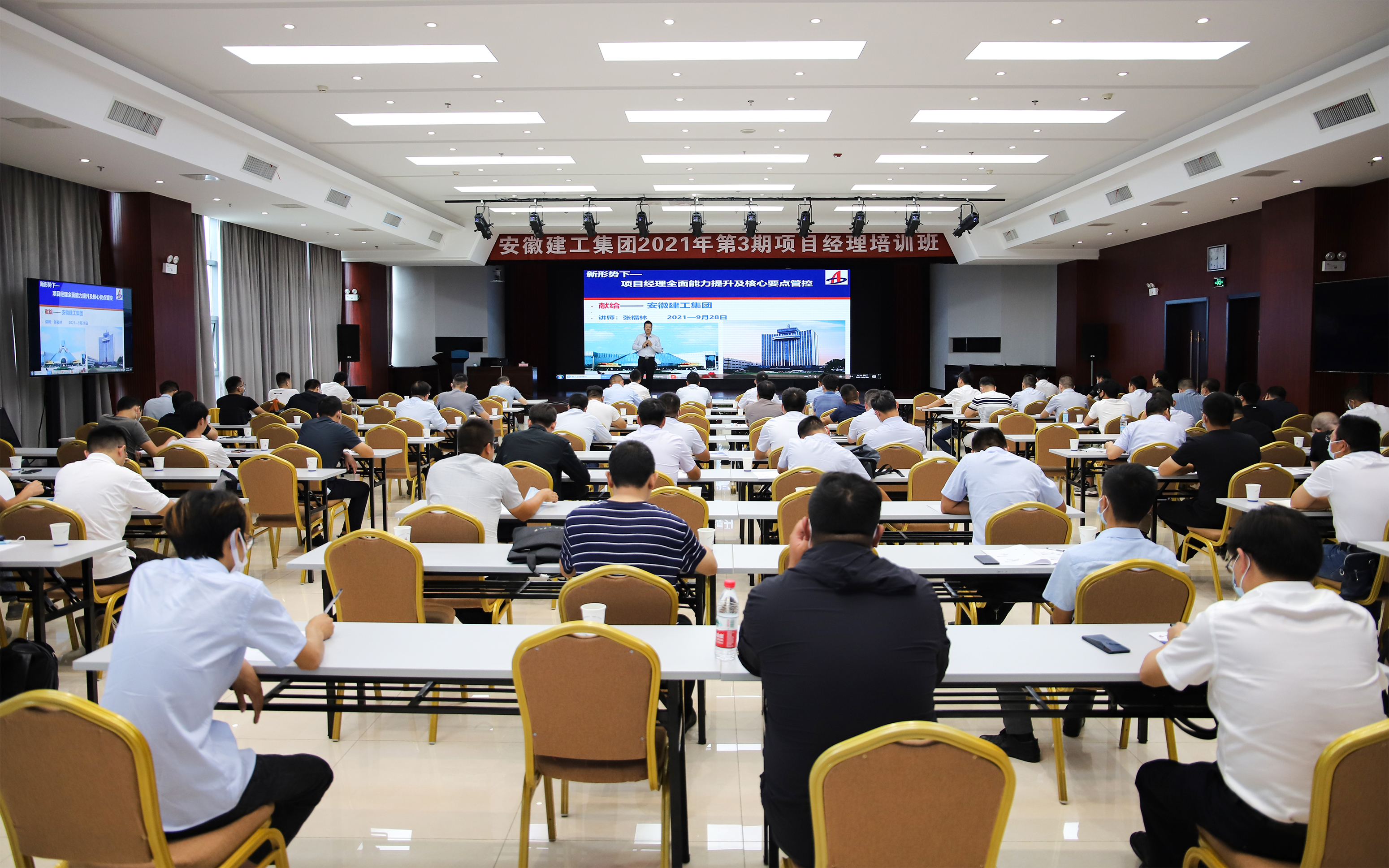 9月份,集團分別在集團黨校(教育培訓中心)安徽水利和順大酒店(肥東店)、安建國際大廈3樓會議室舉辦了集團2021年第2期、第3期項目經理培訓班。兩次培訓由集團工程管理部與人力資源部共同策劃組織,集團所屬單位225名項目經理參加培訓學習。為擴大培訓效果,第3期項目經理培訓班另設有分會場,部分項目經理以視頻方式參加培訓學習。