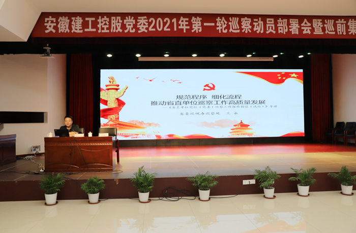 8月20日,建工控股黨委召開2021年第一輪巡察動員部署會暨巡前集中學(xué)習(xí)培訓(xùn)班,深入學(xué)習(xí)貫徹中央及省委關(guān)于開展巡察工作的指導(dǎo)意見,認(rèn)真落實2021年省直單位巡察工作推進(jìn)會議精神,動員部署集團(tuán)2021年第一輪巡察工作并開展巡察工作集中培訓(xùn),正式啟動集團(tuán)新一輪巡察工作。建工控股黨委書記、董事長、黨委巡察工作領(lǐng)導(dǎo)小組組長趙時運出席會議并作動員講話。建工控股黨委委員、紀(jì)委書記、黨委巡察工作領(lǐng)導(dǎo)小組副組長王汪苗主持會議,建工控股、建工股份領(lǐng)導(dǎo)班子成員、集團(tuán)黨委巡察工作領(lǐng)導(dǎo)小組成員出席會議。