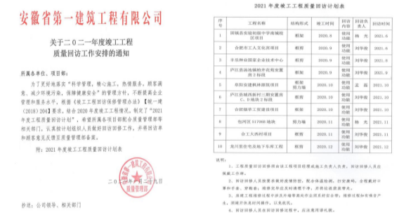 回訪維修重服務。活動期間,安徽一建、安徽二建、安徽三建等單位紛紛組織對承建項目進行檢查、回訪、維修,并建立大客戶回訪數(shù)據(jù)庫,加強與客戶溝通,增強客戶對公司的滿意度,牢牢樹立全心全意為用戶提供優(yōu)質(zhì)服務的安徽建工一流企業(yè)形象,創(chuàng)造“服務換合作”的機遇。