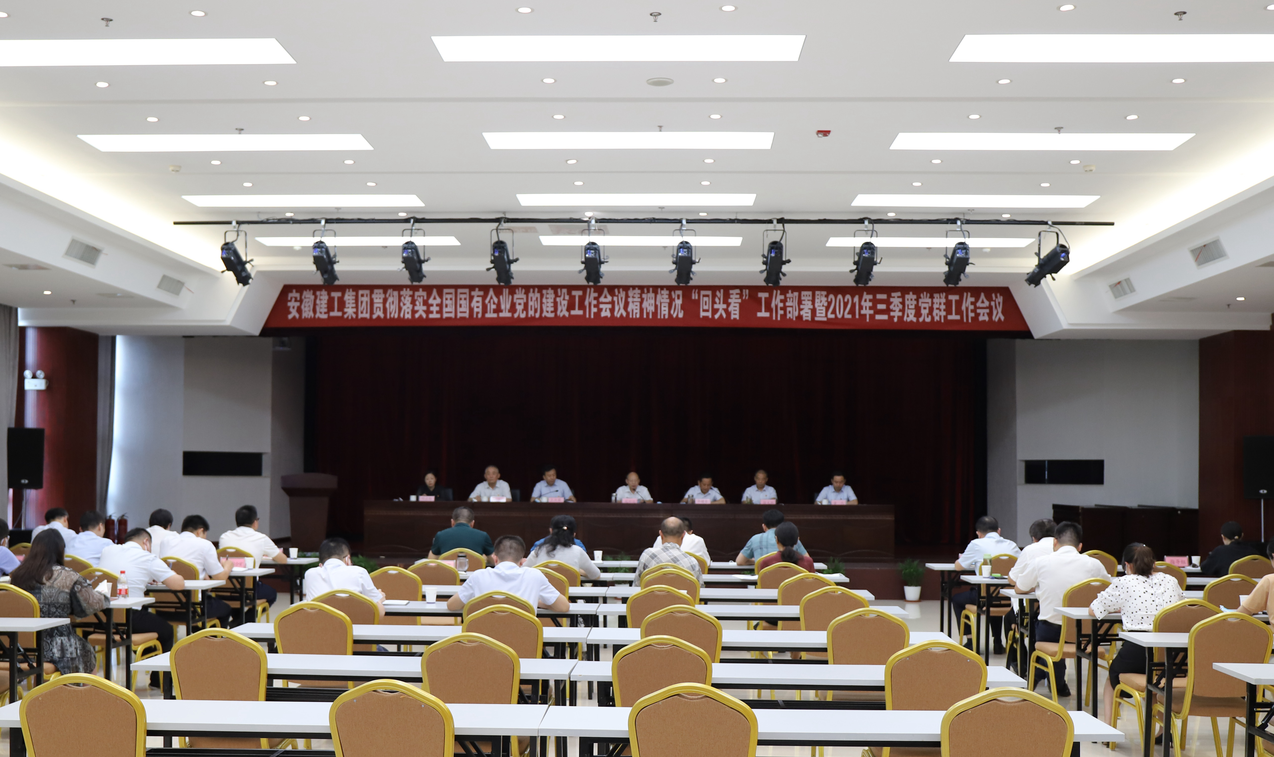 會議以現場加視頻形式召開。集團機關有關部門負責同志,集團黨史學習教育指導組全體成員;所屬各單位黨委(總支)書記、專職副書記、紀委書記、工會主席以及黨群部門和辦公室、人力資源、改革發展部門主要負責同志分別在安建大廈主會場和各分會場參加會議。