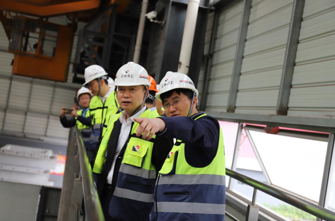 15日下午,應上海建工集團邀請,趙時運一行來到了位于浦東新區的上海建工建材科技集團PC構件生產基地,現場觀摩了德國引進的PC構件自動化生產線,實地聽取了上海建工建材科技集團關于裝配式建筑和建筑材料業務發展情況的介紹。
