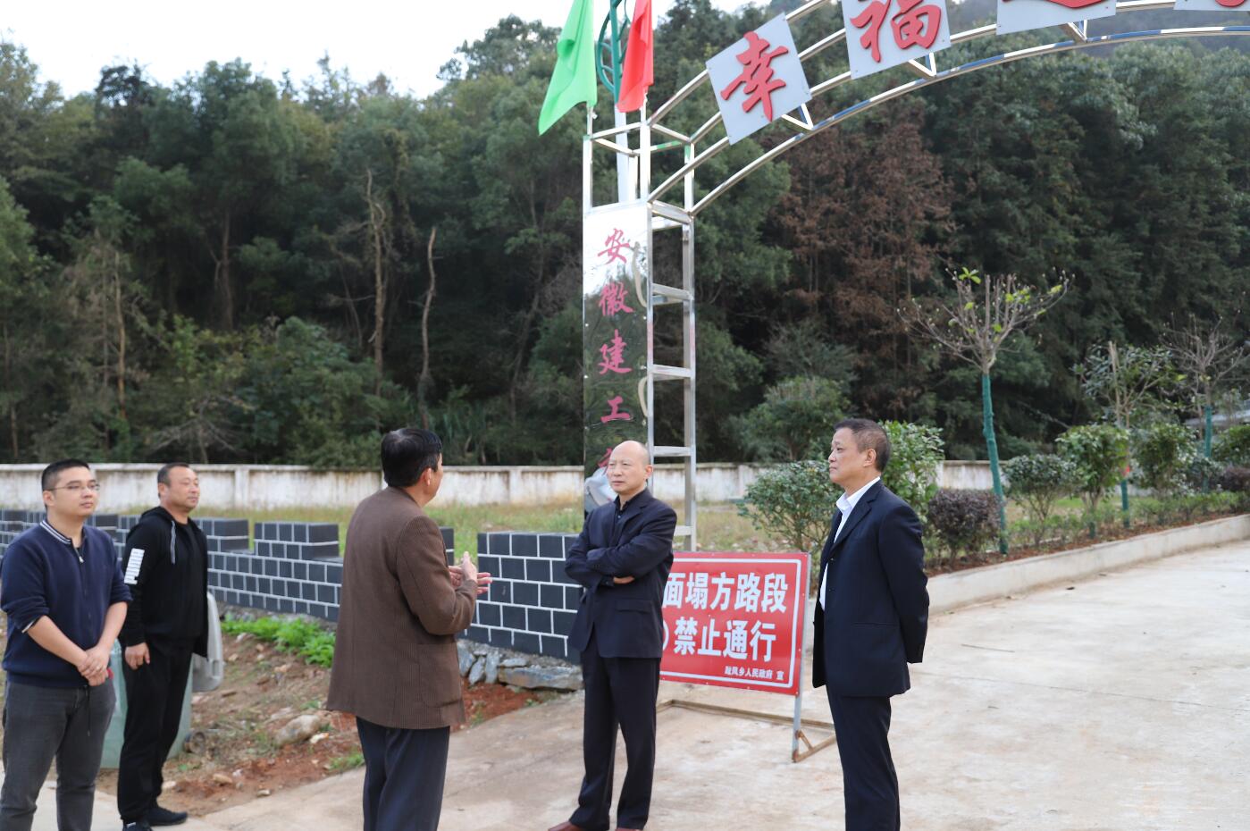 在趾鳳村,趙時運一行考察了丑橘產業園、幸福之家安置房項目。在聽取扶貧工作隊隊長、集團派駐趾鳳村第一書記鄭軍同志的匯報后,他對駐村工作隊取得的突出成績表示充分肯定,對駐村工作隊成員的辛勤工作表示親切慰問,尤其是對駐村工作隊員宮驚立在一線入黨的事跡給予了高度贊揚。