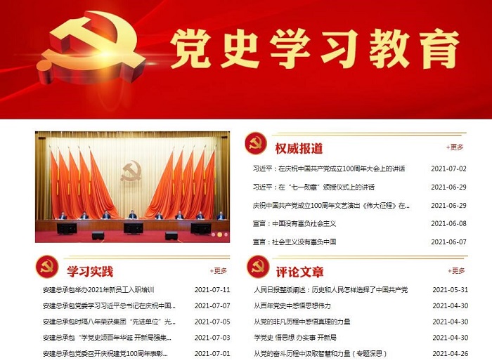 百年黨史礪初心,汲取偉力啟新程。在偉大的中國共產黨百年華誕之際,安建總承包公司立足新發展階段,充分總結再創新高經驗,扎實開展黨史學習教育,認真貫徹落實集團2021年工作會和二屆一次職代會以及集團黨委書記、董事長趙時運在公司一屆一次職代會上的講話精神,開拓創新抓機遇、銳意進取開新局,扎實推進做強做大集團本部,全面構建百億千人企業發展新格局,以接續奮斗新姿態創嶄新業績、頌百年華誕。