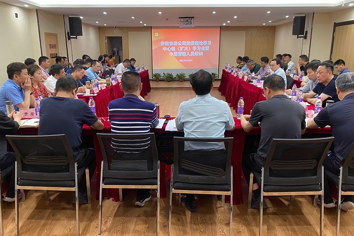 5月8日,公司黨委在阜陽潁東中醫院建設PPP項目舉辦安徽安裝公司黨委理論學習中心組(擴大)學習會暨中層管理人員培訓黨史學習教育專題黨課報告會。公司黨委書記、董事長胡六中作了題為《學黨史牢記初心 辦實事踐行使命》的黨課報告,公司中層管理人員及機關全體員工等共90余人參加;7月5日,公司黨委召開慶祝建黨100周年黨課報告暨表彰大會,公司黨委書記、董事長作了題為《風雨輝煌百年路 高歌奮進新征程》的黨課報告,公司中層管理人員及黨員干部職工等共90余人參加。