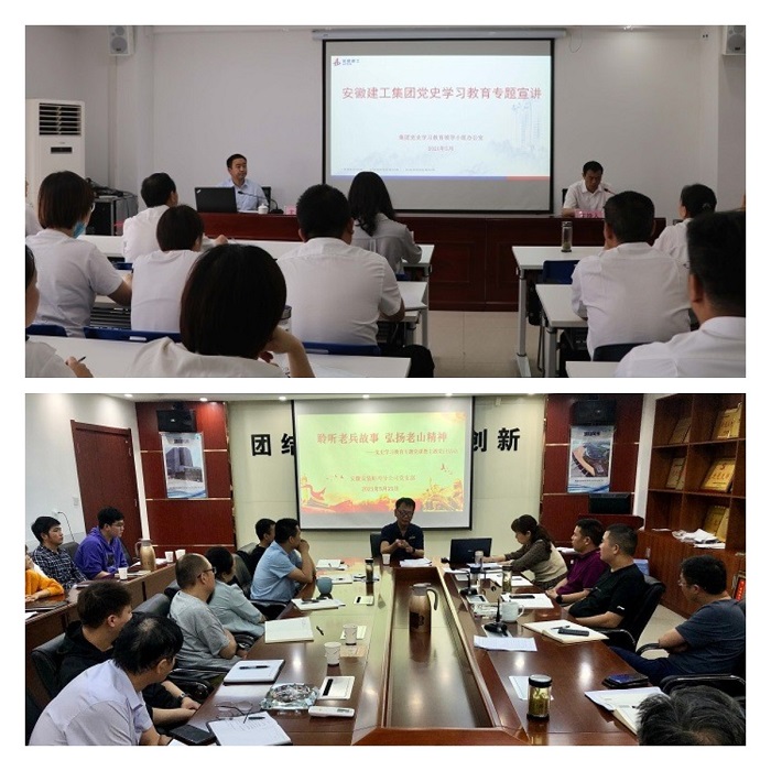 專題宣講課堂。5月27日下午,集團黨史學習教育第十七宣講組赴安徽安裝公司開展黨史學習教育專題宣講。公司領導班子成員分赴西安、阜陽、蚌埠、合肥等地區分公司及項目一線作黨史學習教育專題黨課報告。進一步將黨史學習“送學”到一線,確保習近平總書記在黨史學習教育動員大會上的講話精神落實到基層,傳達到一線,切實將黨史學習教育的成果轉化為干事創業的強大動力。蚌埠分公司黨支部組織開展“聆聽老兵故事  弘揚老山精神”黨史學習教育專題黨課。邀請曾參加過對越自衛反擊戰的退伍老兵為大家上了一堂別開生面的黨課,講述用鮮血和生命捍衛國家領土和民族尊嚴的崢嶸歲月。