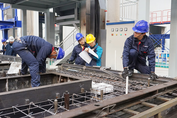 在集團領導系統謀劃下,項目實施團隊抗疫情、斗洪災,實現8個月建成投產,充分展現了安徽建工人“特別能吃苦、特別能戰斗”的工作作風。北城工業公司借鑒了安徽建工建筑工業有限公司(以下簡稱建筑工業公司)的成功經驗,配有環保型智能攪拌站和國內先進的試驗室,可實現年產預制PC構件15萬立方米和管片10萬立方米的生產規模,能同時滿足約300萬平方米房建工程和1.2萬環地鐵管片建設需要。產品涵蓋外墻板、內墻板、疊合板、管廊、箱涵等房建、市政、軌道交通等領域,并可進行鋼筋網片和桁架鋼筋配送等。