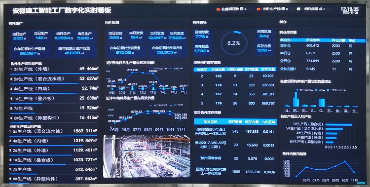 北城工業公司大力推進智能建造模式。采用自行研發的Smart-PC智能信息管理系統,實現了設計、排產、生產、驗收、倉儲、物流、物資、成本、質量、安全、環保、人員等方面數字化管理。先進的混凝土攪拌站、創新的工藝布置、智能的鋼筋加工設備、自動采集的數據系統,充分展現了智能建造、綠色發展的理念。