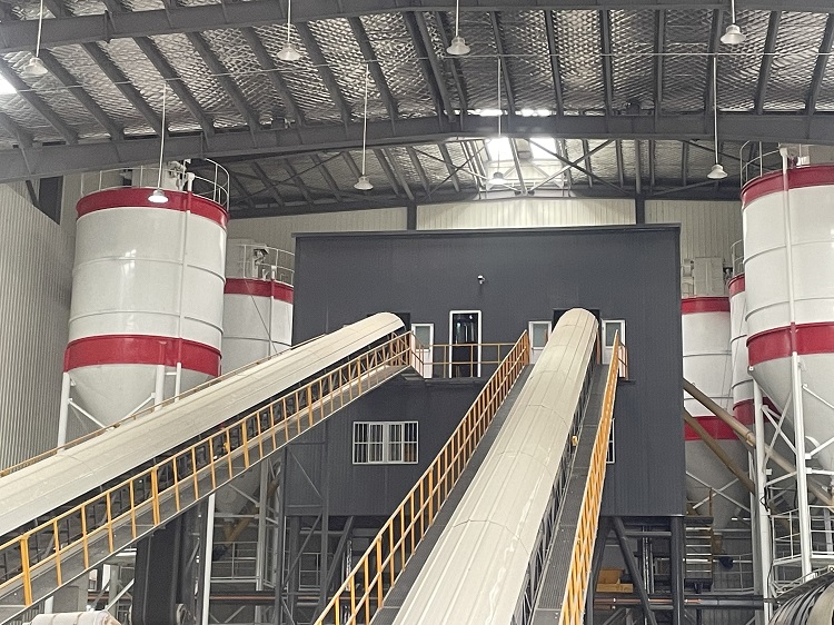 具有“智能收料、環(huán)保儲(chǔ)料、節(jié)能傳料”特點(diǎn)的 8個(gè)鋼板筒倉,每個(gè)筒倉能儲(chǔ)存地材1000噸,筒倉內(nèi)安裝激光料位計(jì),通過測量物料高度,實(shí)現(xiàn)料倉全封閉智能化管理;傳送帶滾筒采用永磁變頻技術(shù),節(jié)能20%且故障低。
