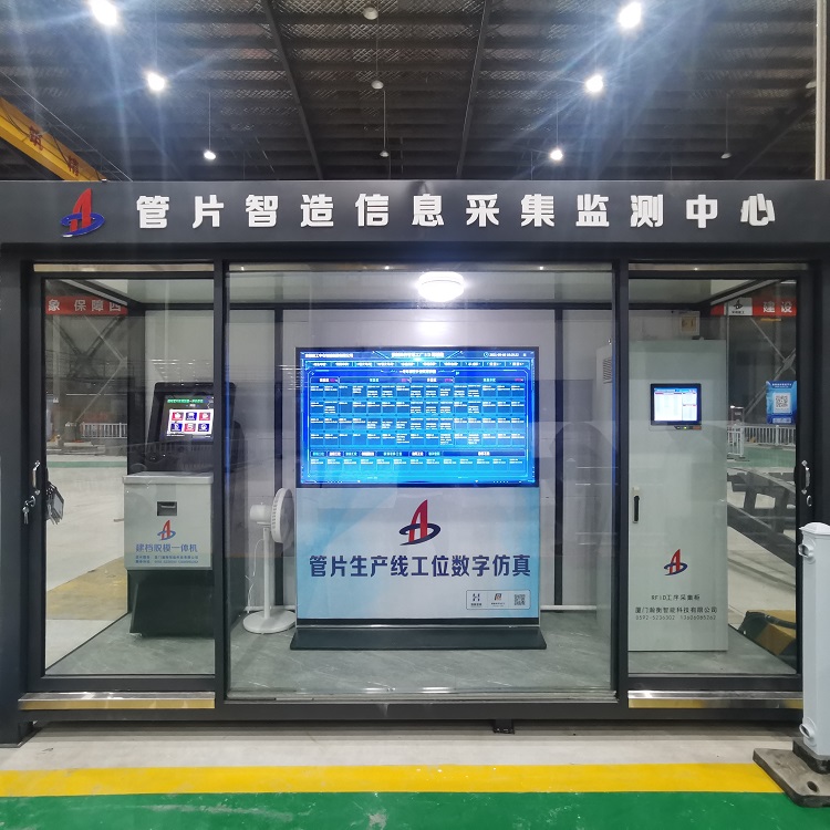 在管片生產(chǎn)環(huán)節(jié),通過RFID自動(dòng)掃描設(shè)備每一個(gè)模具及每一片管片上的電子標(biāo)簽,可以獲取每一個(gè)模具及綁定的每一片管片的所有流程信息。在驗(yàn)收環(huán)節(jié),運(yùn)用5G互聯(lián)網(wǎng)技術(shù),通過PDA掃碼的方式,將管片的質(zhì)檢信息進(jìn)行線上質(zhì)檢、拍照留底;通過BIM3D建模的技術(shù),將管片生產(chǎn)的全過程信息進(jìn)行直觀的展示說明。同時(shí),通過物聯(lián)網(wǎng)技術(shù),將地磅稱重系統(tǒng)、拌和站入料及出料系統(tǒng)、生產(chǎn)線生產(chǎn)系統(tǒng)、后臺(tái)辦公系統(tǒng)等進(jìn)行數(shù)據(jù)整合交互,全面管控生產(chǎn)管理各環(huán)節(jié),提升管理水平、提高生產(chǎn)管理效率和產(chǎn)品質(zhì)量,最終實(shí)現(xiàn)生產(chǎn)管理全過程可視化、管片質(zhì)量可追溯、數(shù)據(jù)分析智能化的目標(biāo)。