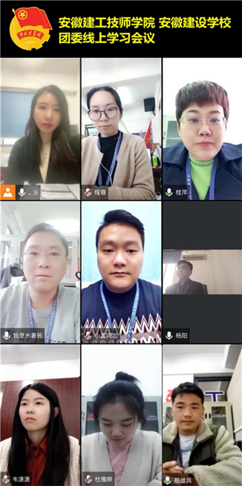 11月15日下午,安徽建工技師學院團委組織召開黨的十九屆六中全會精神專題學習會,望湖、水湖兩個校區的團總支負責人和團干共計11人通過騰訊會議進行了學習,會議由團委副書記桂萍主持,德育工作部主任楊繼強應邀參加了會議。