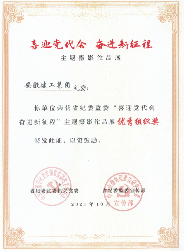 集團(tuán)紀(jì)委圍繞攝影展主題,突出安徽建工行業(yè)特點(diǎn)、發(fā)展成果和企業(yè)文化,從所屬單位46幅作品中精選10幅參賽,其中5幅獲獎(jiǎng),安徽路橋《刷新合肥“速度”--南二環(huán)改造》作品榮獲一等獎(jiǎng),安建總承包《流光溢彩》作品榮獲三等獎(jiǎng),安徽三建《創(chuàng)新高地--濱湖科學(xué)城》《澆筑夢(mèng)想》和安徽一建《天鵝湖夜景》作品分獲優(yōu)秀獎(jiǎng)。