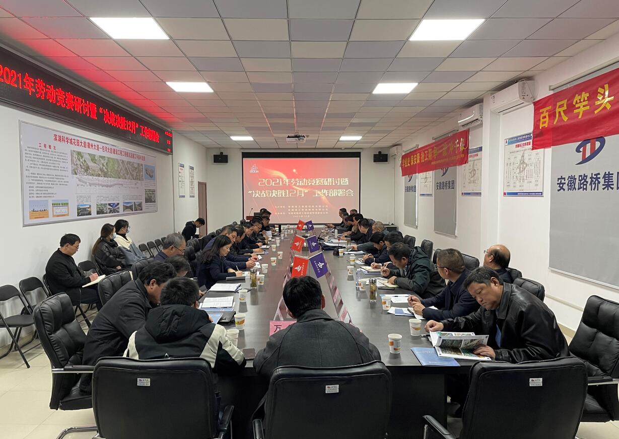 日前,安徽建工2021年度勞動競賽研討暨“決戰決勝12月”會議在安徽路橋集團花園大道項目部召開。此次會議旨在持續推動“學黨史、保安康、搶工期、爭一流、沖千億”勞動競賽向縱深開展,進一步掀起大干快上高潮,高質量實現全年目標任務。股份公司黨委副書記、副總經理孫學軍出席會議并講話。股份公司黨委副書記、控股公司及股份公司工會副主席徐文聯主持會議。