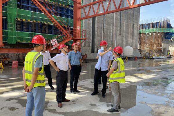 8月25日,建工控股黨委書記、董事長趙時運赴安徽路港派河口船閘項目調研輕型移動模機及信息化應用情況。