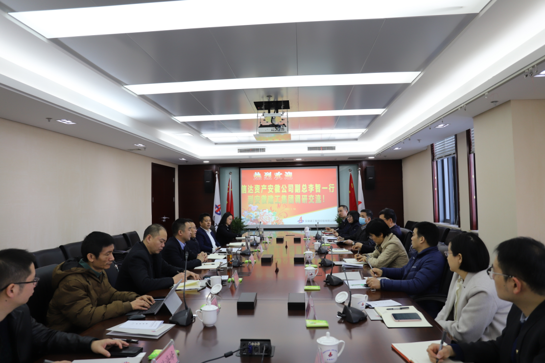 1月18日,信達資產管理股份有限公司安徽分公司副總經理李智一行赴建工集團考察交流。建工股份總經理李有貴出席并主持座談會,建工股份副總經理黃代,南洋商業銀行(信達資產全資外商行)合肥分行行長丁學慶等參加會議。