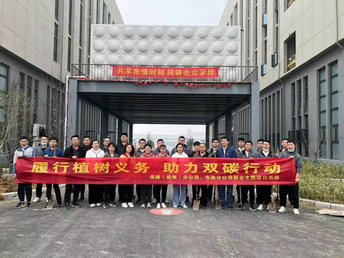 3月14日上午,房建(裝飾)分公司團支部聯(lián)合市政分公司團支部共同開展“履行植樹義務(wù),助力雙碳行動”主題義務(wù)植樹活動,分公司黨支部書記攜團員青年等30余人參加活動。