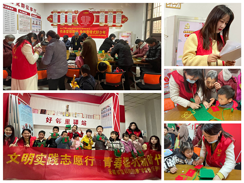 3月2日,安徽建科團委聯合合肥市蜀山經濟技術開發區山湖苑社區、合肥市廬陽區實創公益發展中心在香檳小鎮睦鄰點共同開展“傳承雷鋒精神,爭做雷鋒式好少年”主題實踐活動。通過向轄區兒童講雷鋒故事、共縫軍包DIY活動,讓轄區兒童更好地了解學雷鋒紀念日,教育引導兒童以雷鋒為學習的楷模和榜樣,把雷鋒精神貫徹到實際行動中,爭做雷鋒式好少年,同時通過志愿者參與助力社區文化建設活動,能夠深化兒童對志愿服務理念的認知與認同。