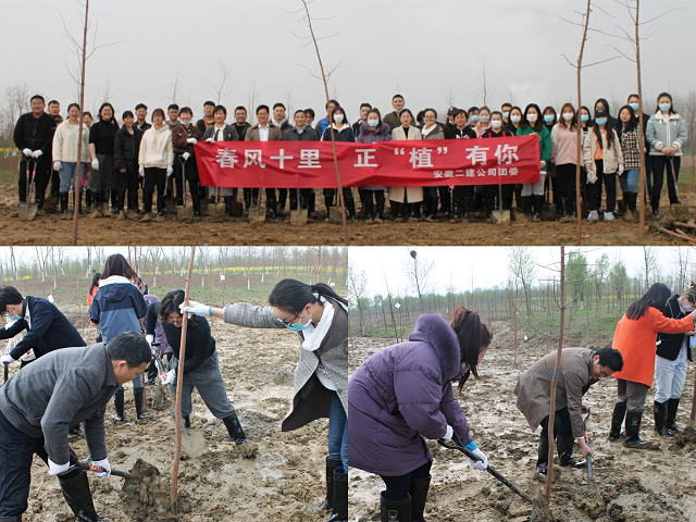 3月18日,安徽二建公司團委組織40余名青年志愿者在濱湖濕地公園開展“春風十里  正‘植’有你”雷鋒月義務植樹活動。公司黨委副書記、工會主席王軍、財務總監王干出席活動。