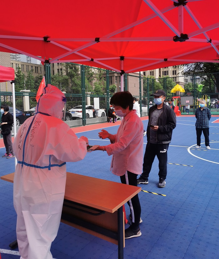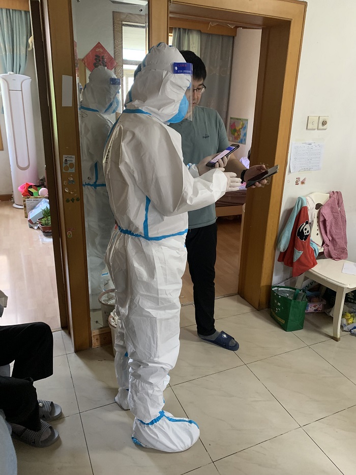 “進行核酸檢測請往這邊走”從上午6點一直到深夜12點,剛脫下防護服蔣浩瀚不顧一天的疲憊又開始了指引工作,他說“疫情就是命令,防控就是責任。疫情當前,作為青年一代,更要不辱時代使命,不負人民期望,主動投身“戰疫”一線,用實際行動展現“戰疫有我在、青春勇爭先”的責任擔當,爭做新時代五四精神的傳遞者、踐行者。”