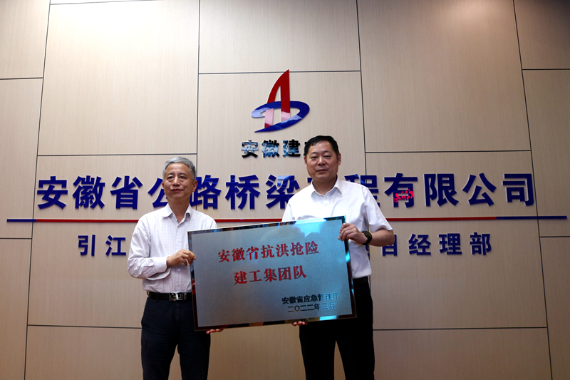 調研組一行深入現場,聽取了安徽建工集團關于省級自然災害應急救援隊伍建設進展、日常安全生產以及企業應急救援隊伍建設情況的匯報,并對安徽省抗洪搶險建工集團隊進行了授牌。