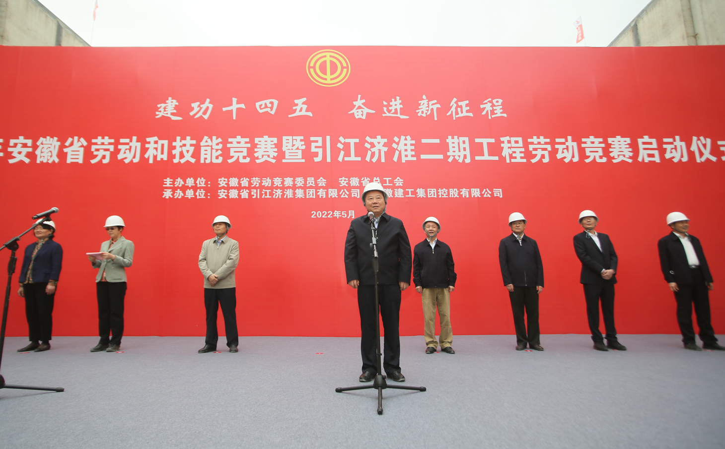 省人大常委會黨組副書記、副主任,省總工會主席宋國權宣布競賽啟動,省勞動競賽委員會副主任、省總工會黨組書記、副主席徐發成作競賽動員講話。省發改委一級巡視員、省引江濟淮辦公室主任胡再生,安徽建工集團控股有限公司黨委書記、董事長趙時運分別致辭。