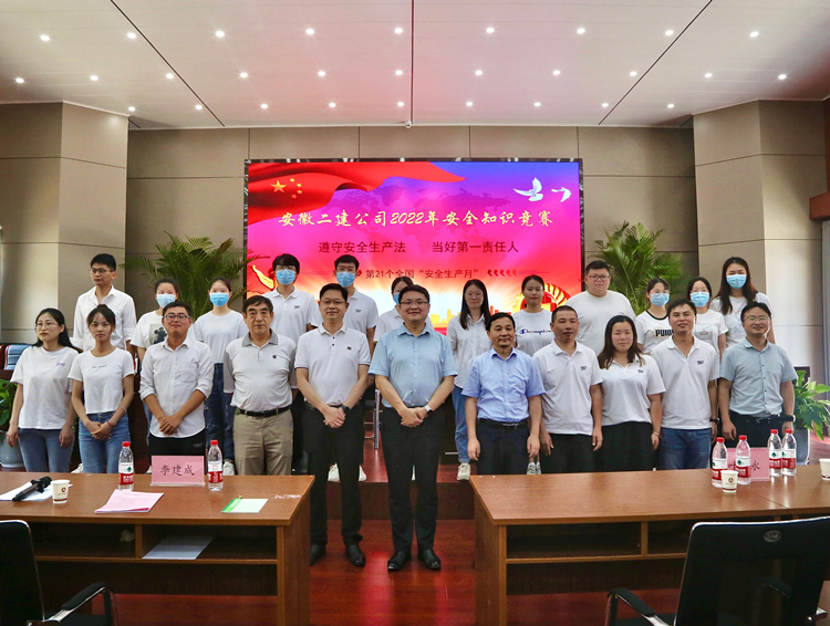 今年六月是第21個“全國安全生產月”,為了貫徹落實活動主題“遵守安全生產法 當好第一責任人”,用以賽促學、以活動促宣傳的方式提高廣大職工的安全意識,6月17日上午,公司工會牽頭,與安全管理部聯合舉辦了安徽二建2022年安全知識競賽活動。公司黨委副書記、總經理李建成,黨委副書記、工會主席王軍出席活動,黨委委員、副總經理葉和永,安全總監、安全管理部主任曹建,工會副主席、女工委主任王俊出席并擔任評委。