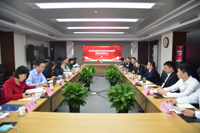 10月13日下午,商務部國際貿易經濟合作研究院副院長張威一行蒞臨安徽建工,開展“走出去”專題調研。建工股份副總經理、海外事業部黨總支書記、總經理邢應梅主持交流座談。