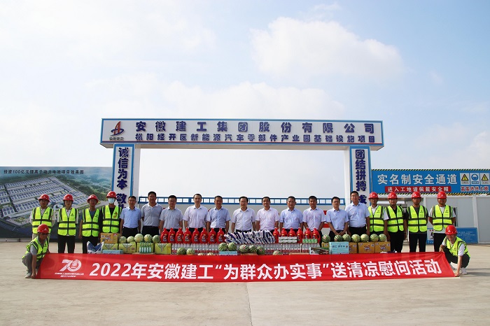 7月18日上午,建工股份黨委副書記、總經(jīng)理、董事李有貴到安建總承包承建的樅陽(yáng)新能源汽車零部件產(chǎn)業(yè)園基礎(chǔ)設(shè)施建設(shè)EPC項(xiàng)目開展建工控股第一次黨代會(huì)精神宣講暨“送清涼”活動(dòng)。
