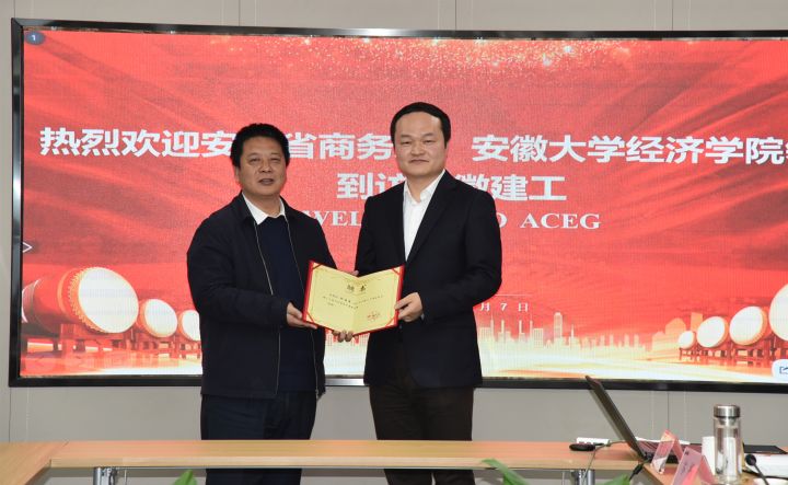 簽約儀式后,孫永彬、田淑英、華德亞、朱金蓉共同為安徽大學經濟學院國貿專業實踐教學基地及建工股份碩士生導師工作站揭幕,顧廣玲和華德亞為邢應梅、胡海濤頒發安徽大學國際商務碩士專業學位研究生兼職導師聘書。