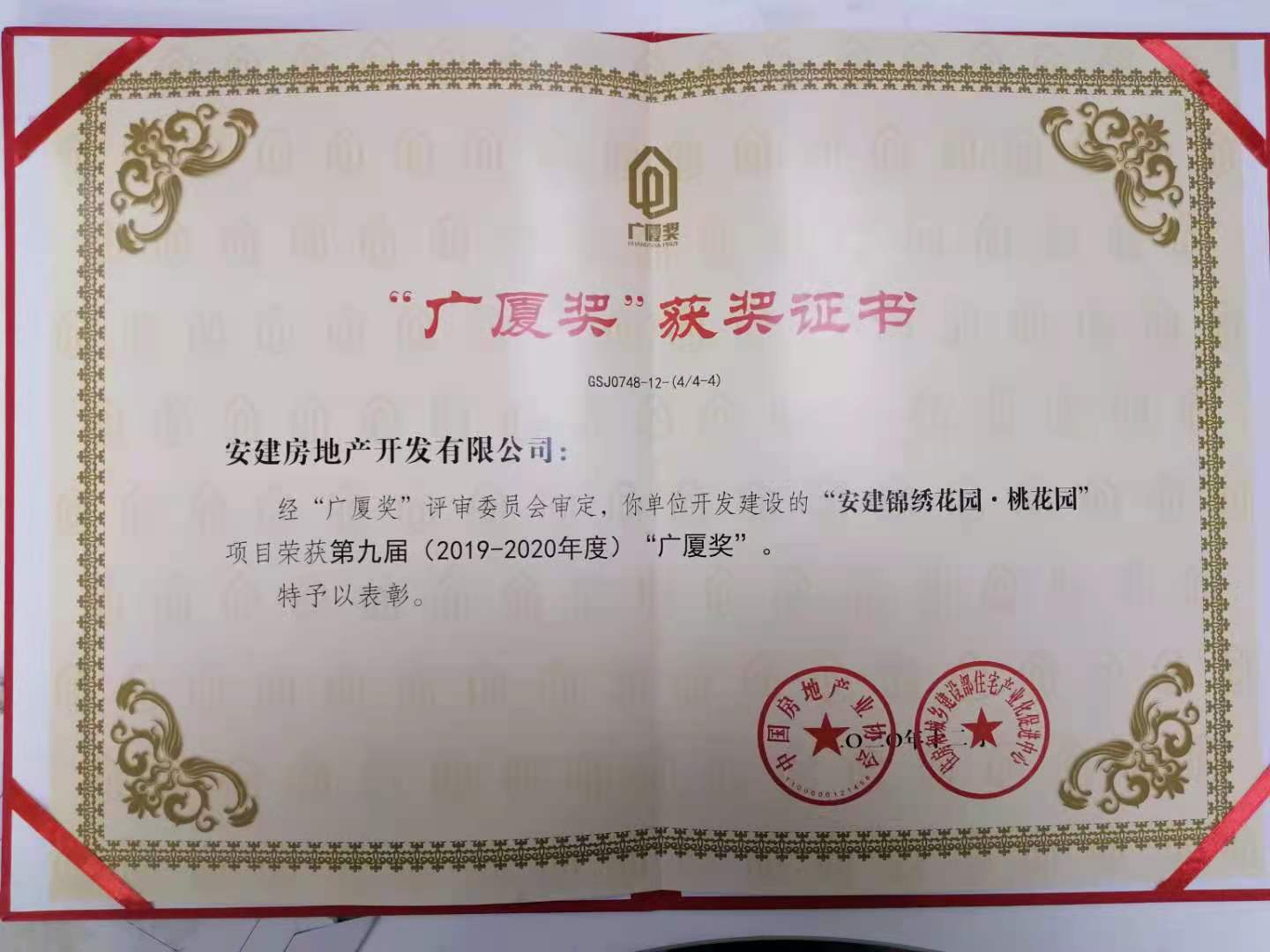 近日,集團(tuán)所屬安建·錦繡花園項(xiàng)目喜獲第九屆“廣廈獎(jiǎng)”,成為安徽省首個(gè)獲此殊榮的裝配式項(xiàng)目。這也是集團(tuán)獲得的首個(gè)“廣廈獎(jiǎng)”。