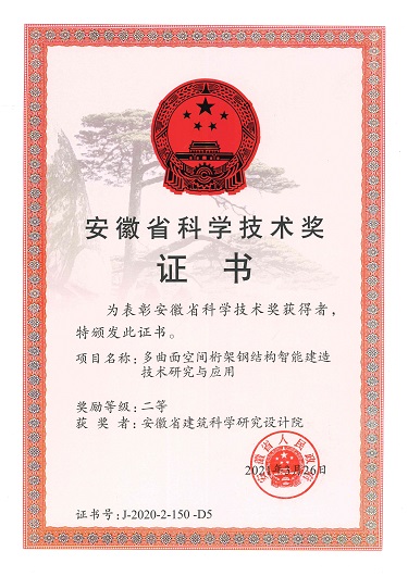 4月12日,安徽省科學(xué)技術(shù)獎(jiǎng)勵(lì)暨加快建設(shè)科技創(chuàng)新攻堅(jiān)力量體系推進(jìn)大會(huì)在合肥隆重召開(kāi),安徽建工集團(tuán)申報(bào)的2項(xiàng)科技成果獲2020年度安徽省科學(xué)技術(shù)獎(jiǎng)“科技進(jìn)步獎(jiǎng)” 二等獎(jiǎng)。