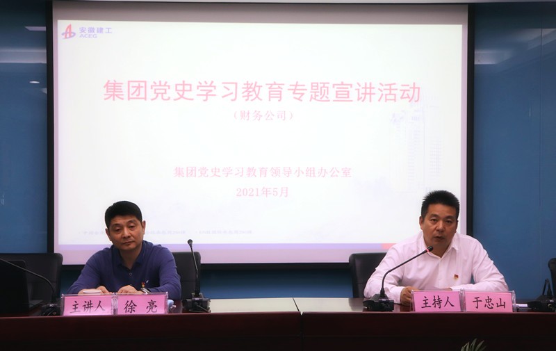 根據集團黨史學習教育領導小組《關于做好黨史專題宣講工作的實施方案》部署,5月21日集團第十八宣講組到安建金融開展了黨史學習教育專題宣講會。會議由股份公司黨委委員、財務總監徐亮宣講,公司黨總支副書記、總經理于忠山主持,金融板塊全體黨員及入黨積極分子參加。