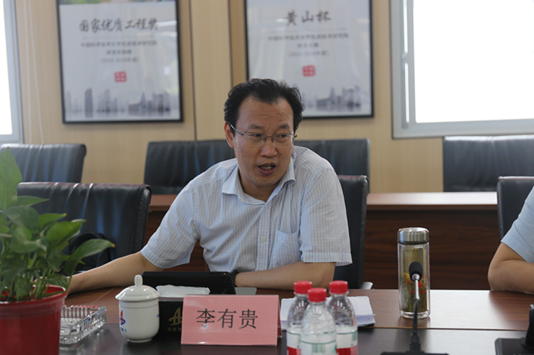 李有貴一行實地察看安徽三建肥西產融文化中心檔案館、五顯路、自建水穩站項目,了解各子項目建設進度情況及水穩站生產設備運行狀況,并在項目指揮部會議室召開座談會,聽取了肥西產融項目自施工建設以來,在工程進度、安全、物資、質量、策劃、融資等七個方面的情況匯報,并就產城融合片區開發項目的建設模式等業務同與會人員進行了深入交流。李有貴對肥西產融項目施工建設以來取得的階段性成果予以了肯定。